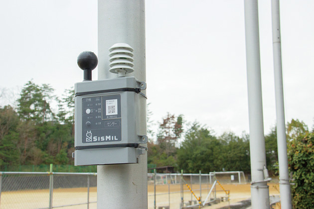 3社のシステムに目が留まり比較したところ、1社はSisMilと同様の機能をもっていましたが、事業年数が浅く、実績や信頼性という点でSisMilに分がありました。もう1社は計測機能のみで、データ活用も含めたシステムでの導入が目的であるため不採用に。こうしてSisMilのトライアル運用を始め、管理画面の操作や計測データの見方、帳票の出力などを確認。表示は細かな設定ができたため見やすく、操作も分かりやすいマニュアルがあったので特に戸惑うことはありませんでした。求めていた機能をしっかりと備えたSisMilなら、目的に沿った運用ができると判断。コストも含めて納得感があり、約1カ月後に本契約へ切り替えました。計測機(子機)は、日光が一日中当たり校内でも特に暑い、第一グラウンドに面した場所へ設置しています。
